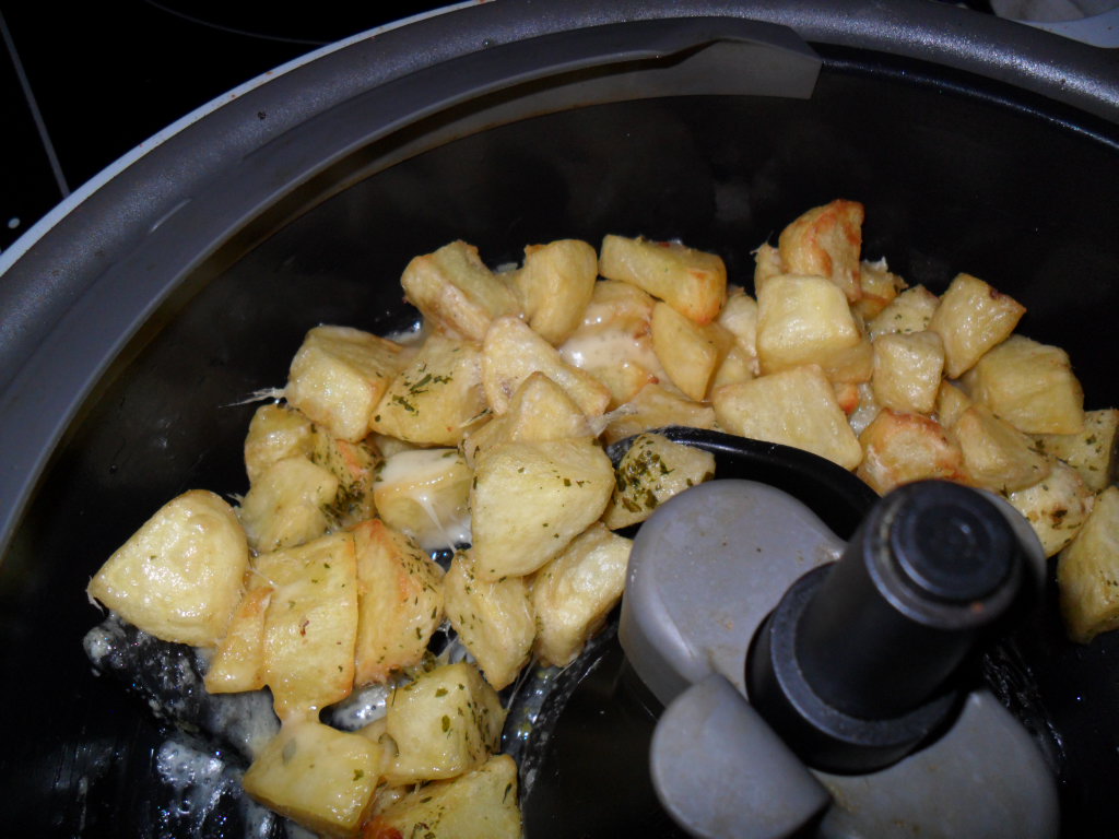 Éplucher et couper des pommes de terre.Versez-les dans l’Actifry avec 1 cuillère à soupe d’huile d’olive . Programmer 15 mn . Ajouter des morceaux de saint-nectaire écroûté ,continuer la cuisson 10 mn . Parsemer de persil et servir .
