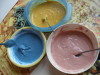 Ingrédients : 2 cuillères à soupe de farine, 2 cuillères à soupe de sel, 1 sachet de levure chimique, quelques gouttes de colorant alimentaire, un peu d’eau froide