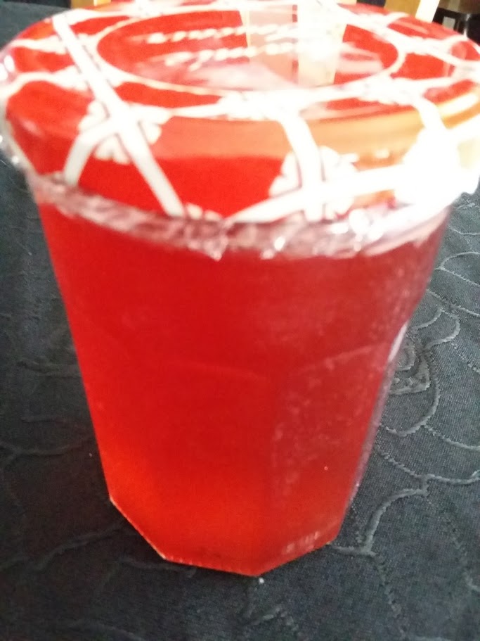 Peser le jus obtenu ,  ajouter le sucre  moins 100 g , le jus d’ 1/2 citron  . Programmer 30 min /varoma/vit 2  mettre le panier sur le couvercle au cas ou il y aurait des éclaboussures. A la sonnerie verser dans des pots que l’on aura lavé et stérilisé.