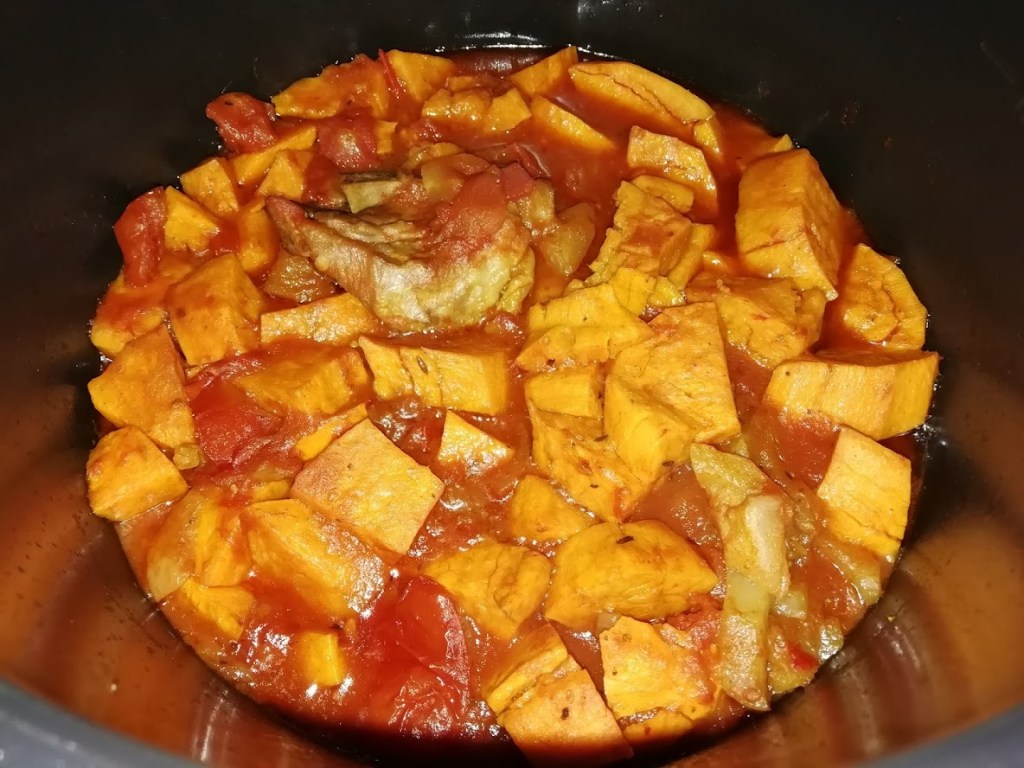 Dans la cuve du Cookéo mettre 1 cuillère à soupe d’huile d’olive. Puis les morceaux d’agneau faire revenir sur tous les côtés , ajouter 1 oignon éplucher , émincer. Laisser dorer puis ajouter des patates douces épluchées et coupées en morceaux , un bocal de tomates concassées (pour moi fait maison) . Programmer le Cookéo 20 min mode sous pression.