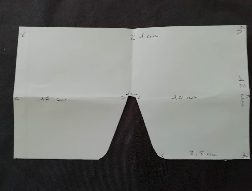 J’ai réalisé cette petite pochette pour y mettre mon masque , car j’en avais marre de voir mon masque à même mon sac ou dans la voiture. Tracer un rectangle de 21 cm/12 cm, plier ce rectangle en 4, au centre de la longueur la plus longue mesurer 1 cm et en bas de ce rectangle mesurer 8,5 cm découper et arrondir les angles .Je vous mets un schéma .