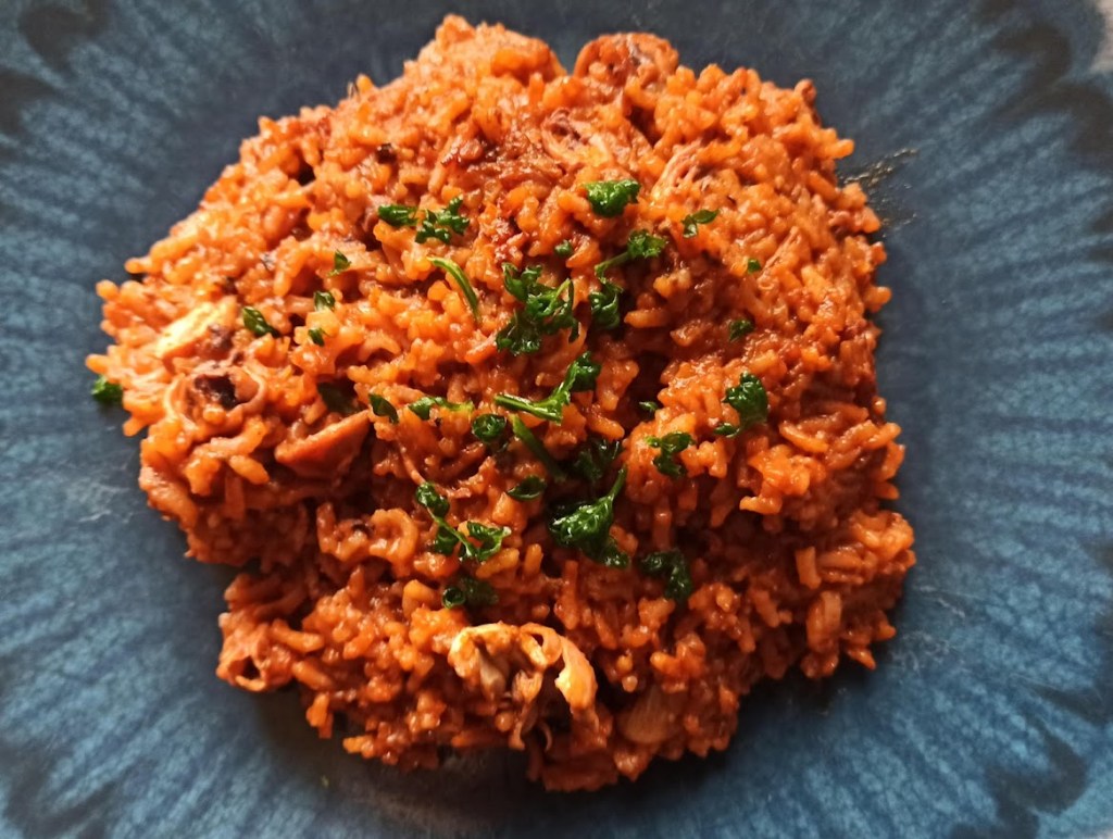 Programmer l’appareil en mode doré.Dans la cuve mettre 1 c à s d’huile d’olive , 1 oignon émincé. Ajouter les calamars frais, 200 g de concentré de tomate, 200 ml d’eau, 150 g de riz. Mettre en mode cuisson sous pression pendant 10 minutes. Servir.