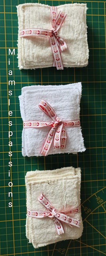 J’ai réalisé ces petites lingettes blanches démaquillantes et les noirs me servent pour le nettoyage du visage .