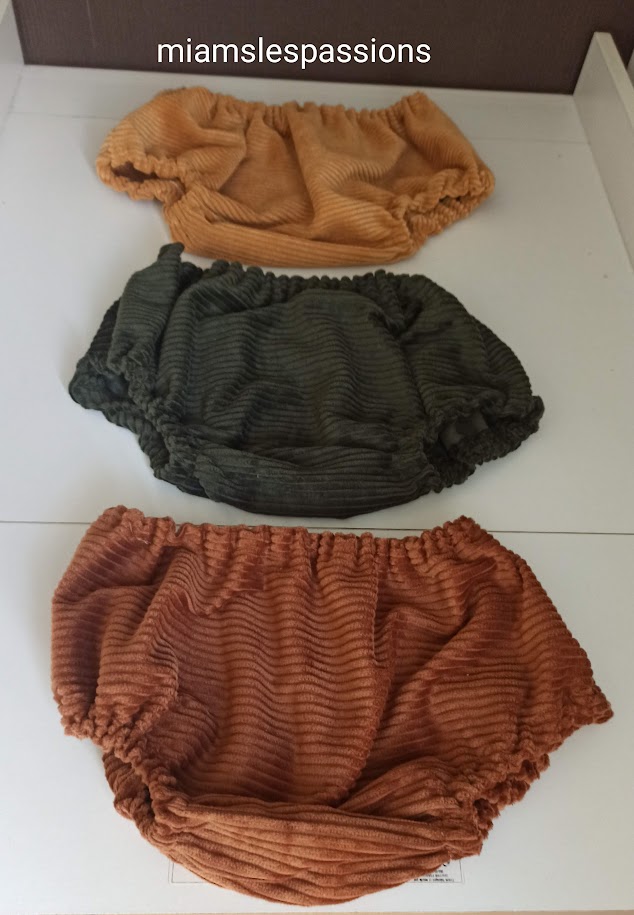 Voici un petit lot de bloomer en velours côtelé , que j’ai réalisé pour cet automne et l’hiver prochain. Le même modèle que pour ceux réalisé pour l’été .