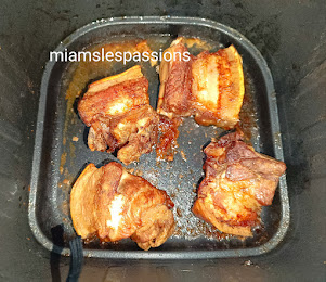 Mettre dans la cuve des morceaux de poitrine de porc et programmer la friteuse à 190° pendant 10 minutes . A la sonnerie mettre 2 pincées de gros sel. Programmer l’appareil 200 °/ 25 minutes en retournant les morceaux à mi-cuisson .