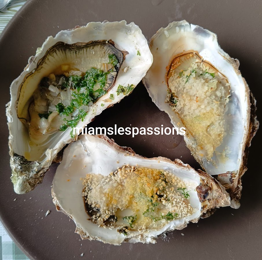 Ouvrir quelques huîtres. Parsemer d’échalotes , de persil , un peu de beurre doux et de la chapelure. Disposer dans l’Air Fryer 190°/ 5 min.