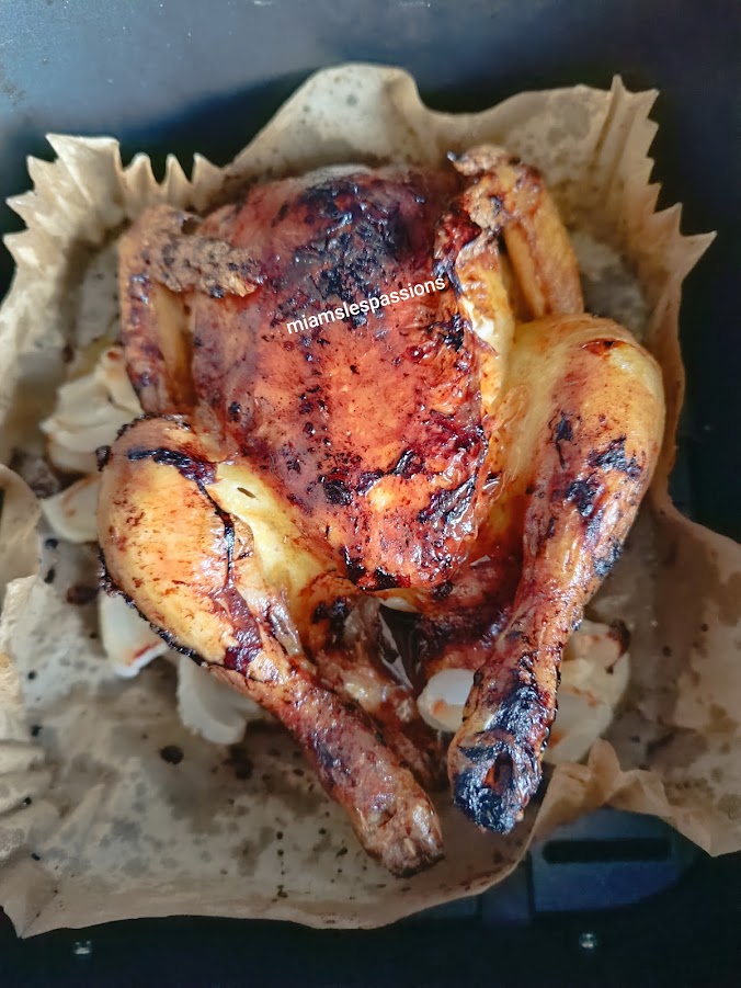 Dans un plat allant dans la friteuse mettre un coquelet que vous fourrez de litchis épluchés et dénoyautés au préalable . Vaporiser le coquelet d’huile de noix. Programmer l’Air Fryer 190°/ 20 minutes en milieu de cuisson retourner le coquelet . a la sonnerie mettre des litchis autour puis continuer la cuisson 5 minutes.