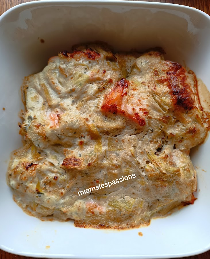 Dans un saladier mélanger un restant de blanc de poireaux avec de la crème fleurette, ainsi que des morceaux fromage fines herbes , ajouter des gnocchis et du saumon frais coupé en morceaux. Verser dans un plat allant au Air Fryer mettre dans celui-ci 20 min°/180°. A la sonnerie déguster.
