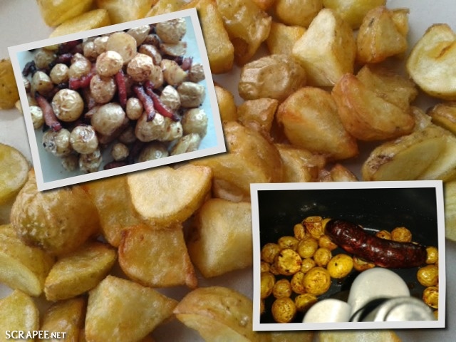 Mettre des gésiers confits, enlever de la plupart de leurs graisses .Ajouter des pommes de terre épluchées et coupées en cubes. Programmer 20 mn .Servir.