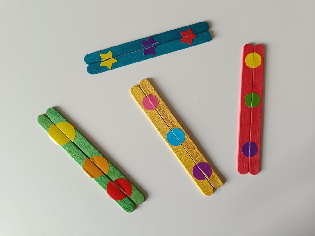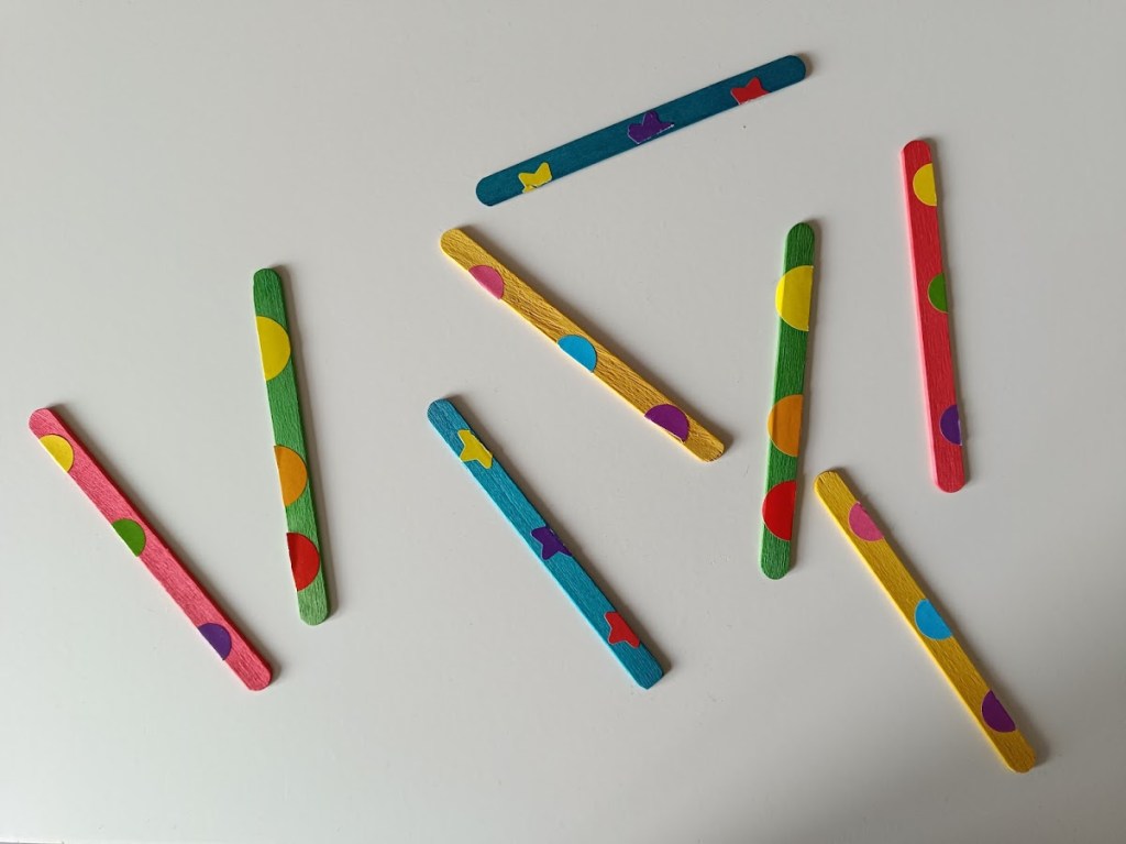 Petit jeu à confectionner pour les jeunes enfants . Des bâtons de glace, quelques gommettes et le tour est joué.