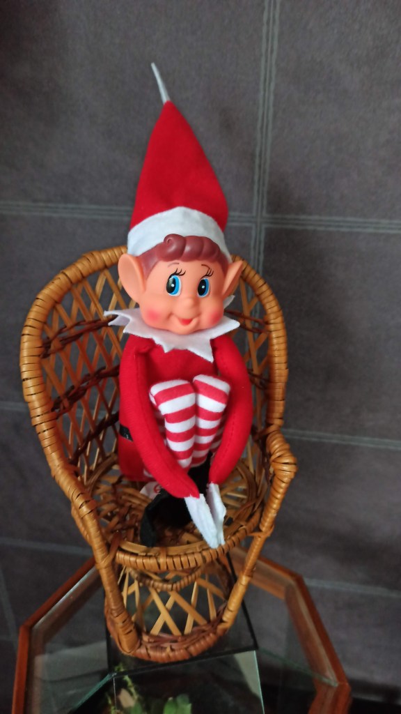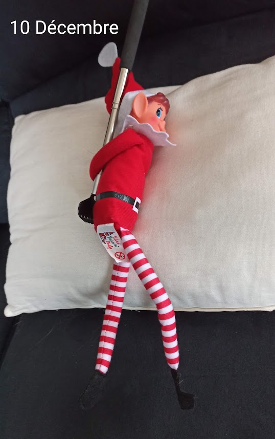 Dans la nuit du 30 novembre est arrivé à la maison un petit lutin que j’ai nommé Pipo . Il m’a été envoyé par le Père Noël car Pipo avait bien travaillé et avait droit à quelques jours de vacances . Il sera à la maison jusqu’au 24 décembre où il rejoindra le Père Noël pour la distribution des jouets dans les maisons . La particularité de ce petit lutin farceur c’est que la journée il ne bouge pas il dort , chez moi il est sur son petit fauteuil , mais dès que tout le monde est couché il prend vie pour faire des bêtises.