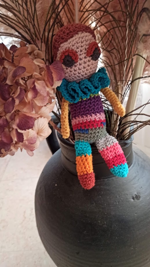 Voici une petite poupée réalisée au crochet. Simple à réaliser avec des restes de laines.