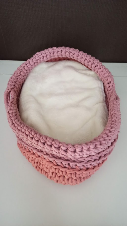 J’ai réalisé ce couffin au crochet pour ma petite fille, le modèle se trouve sur Pinterest. Avec un petit matelas et une petite couette.