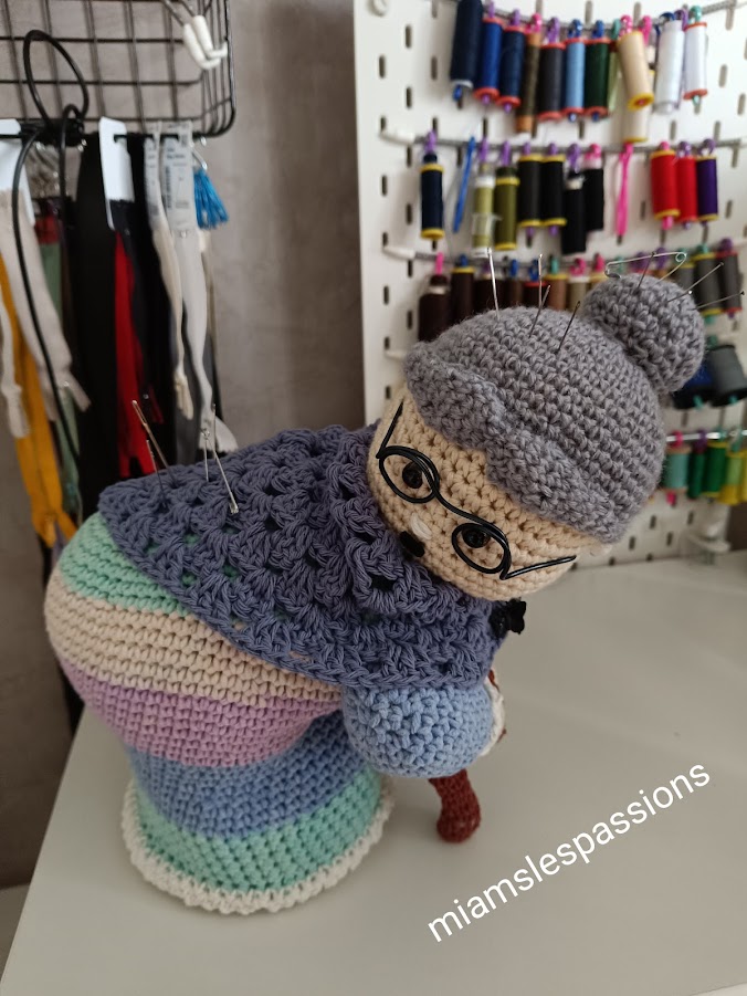 J’ai réalisé cette mamie au crochet d’après le tuto de Handicrafts Créations ( créatrice Leila). Elle va me permettre de mettre mes aiguilles de couture .
