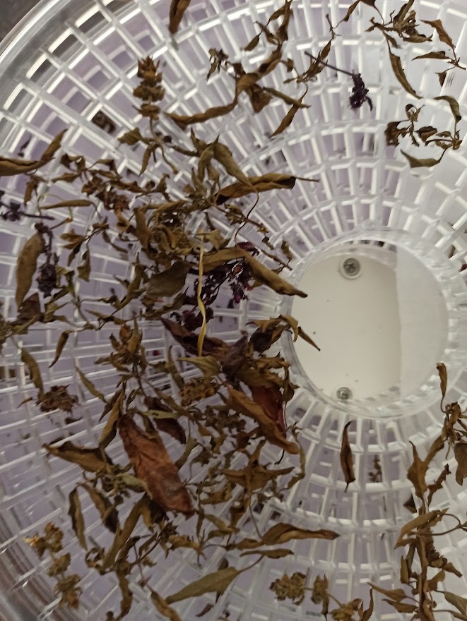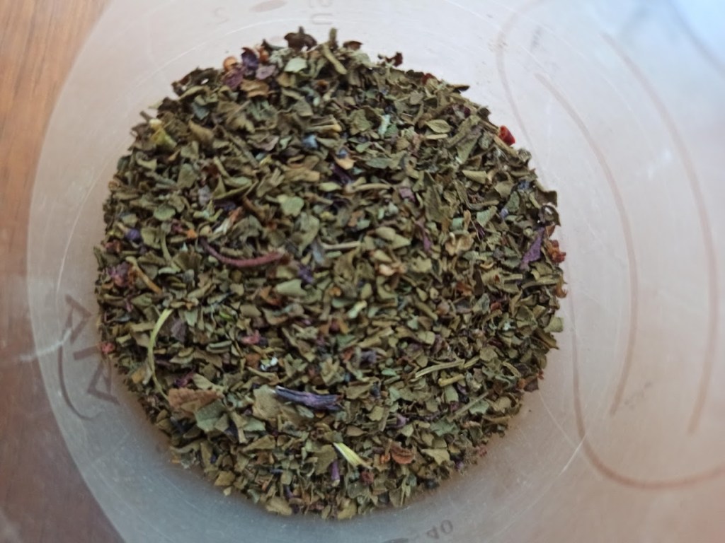 Dans le bol du Thermomix 5 mettre du basilic déshydraté ici avec du gros sel mixer vitesse 6 pendant quelques secondes . C’est prêt pour les salade de tomates , les pâtes etc … .