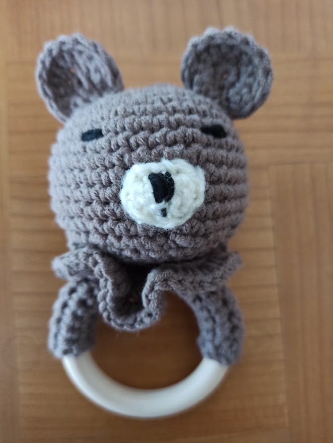 Très simple à faire je me suis inspiré de ce DIY https://monptittresor.fr/diy-ourson-hochet-au-crochet/