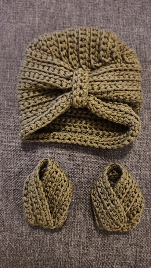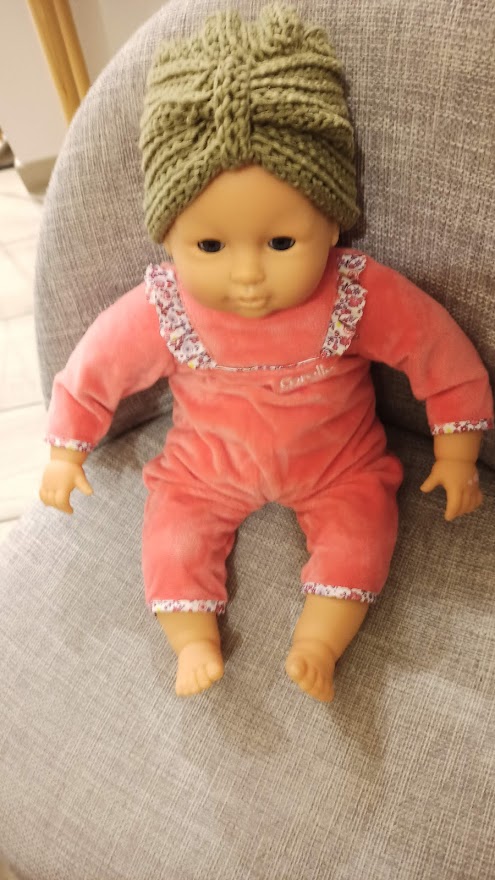 Petit ensemble pour poupée bonnet ainsi que chausson au crochet . Au départ réalisé pour un bébé , mais cela était trop petit.