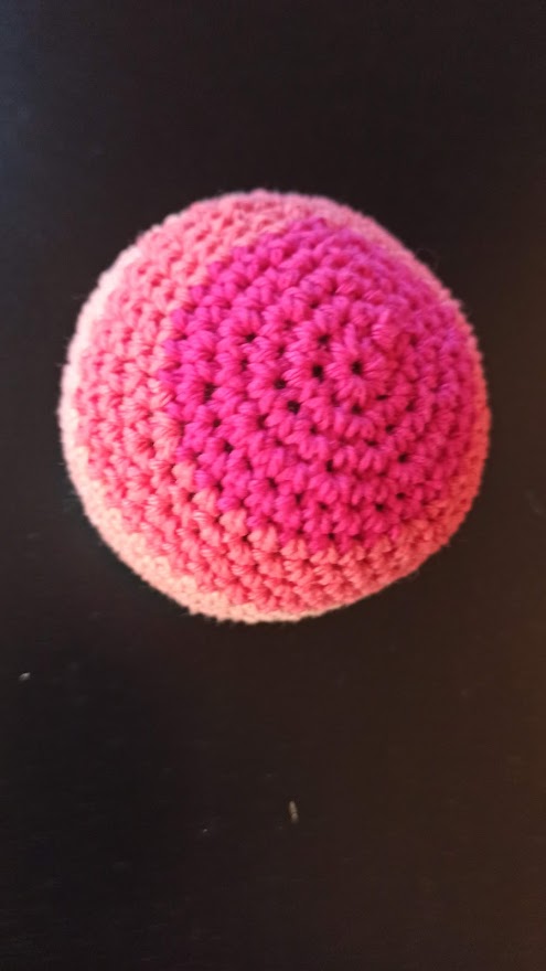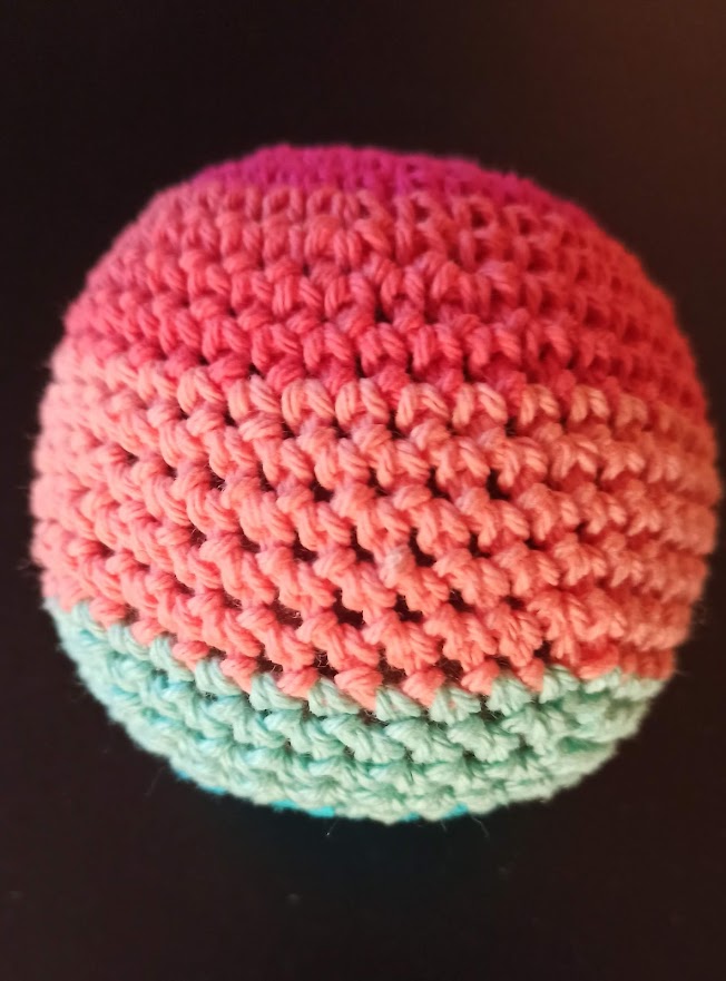 J’ai réalisé cette petite balle au crochet avec des restes de coton , en demi-bride.