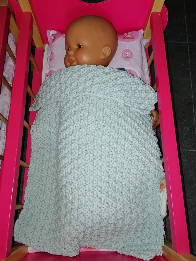 J’ai réalisé deux petites couvertures au tricot pour les lits superposés des poupées .