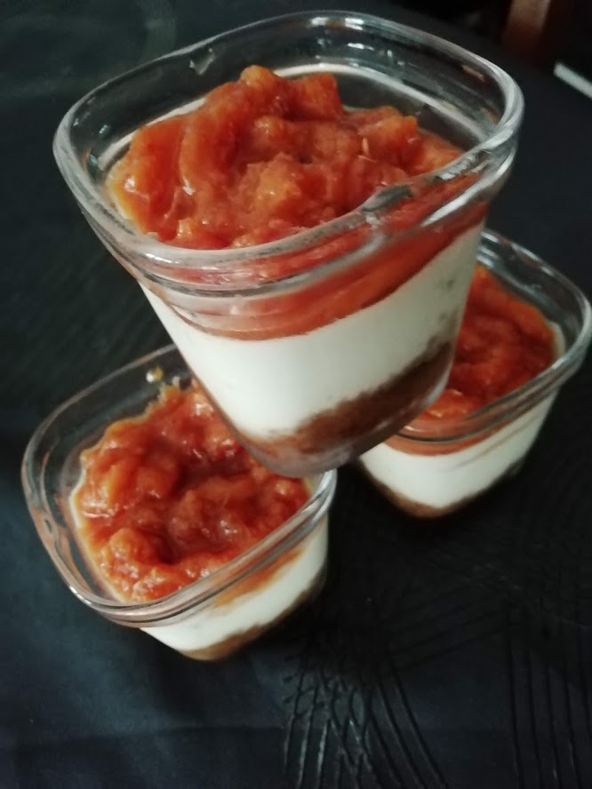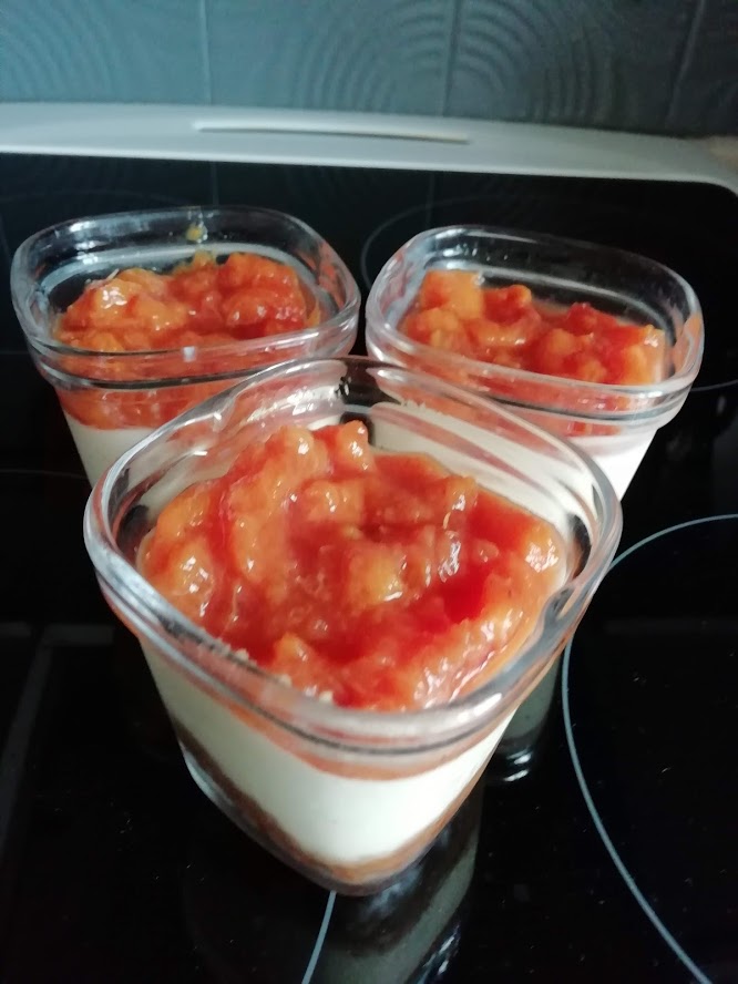 Cuire dans une casserole des pêches épluchées et dénoyautées avec 2 cuillères à soupe de sucre. Il faut qu’elle soit compotée. Laisser refroidir. Dans un saladier mettre 10 spéculoos mixer à mélanger avec 20 g de beurre , répartir dans les 6 pots . Fouetter 2 œufs avec 20 g de sucre vanillé , ajouter 150 g de mascarpone et 250 g de fromage blanc fouettée de nouveau et verser dans les pots .Programme 3 de la multi-délices pendant 30 min sans oublier l’eau . A la sonnerie laisser refroidir puis mettre au frigo . Au moment de servir mettre la compotée de pêches .