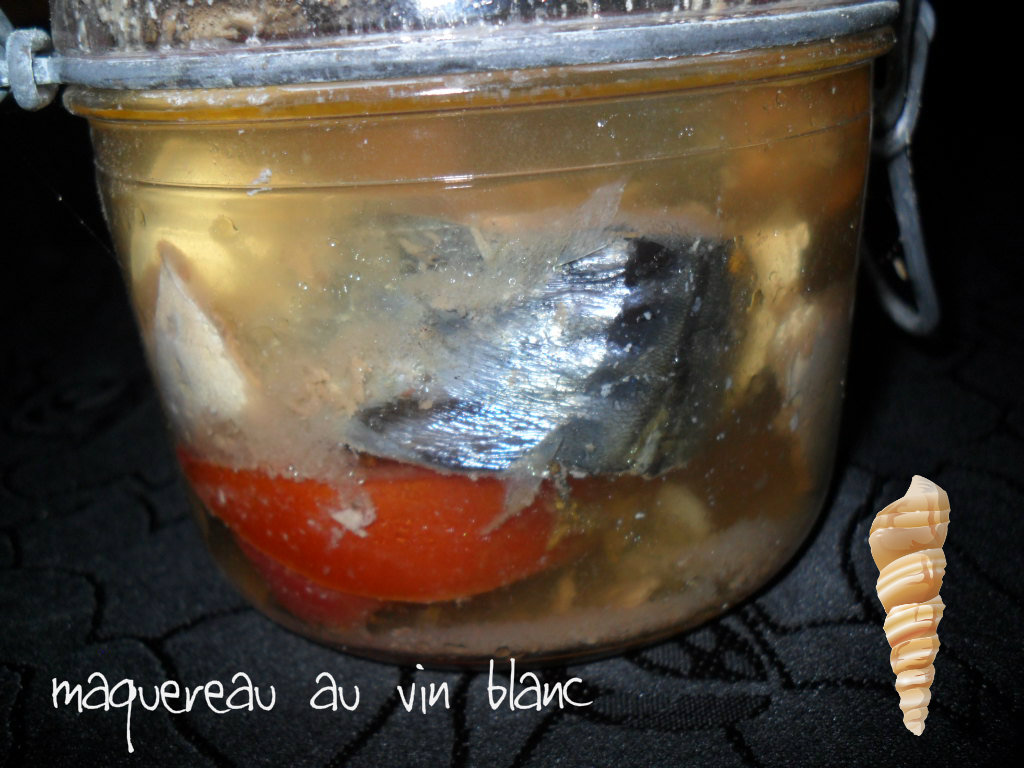 Mettre dedans 2 tranches de citron , 2 clous de girofle ,10 grains de poivre , 10 graines de coriandre ,2-3 rondelles de tomates , 2-3 échalotes , 1 cuillère à café de gros sel , 2 rondelles de carotte , thym , laurier et des tronçons de maquereaux et recouvrir avec le jus ci-dessus .