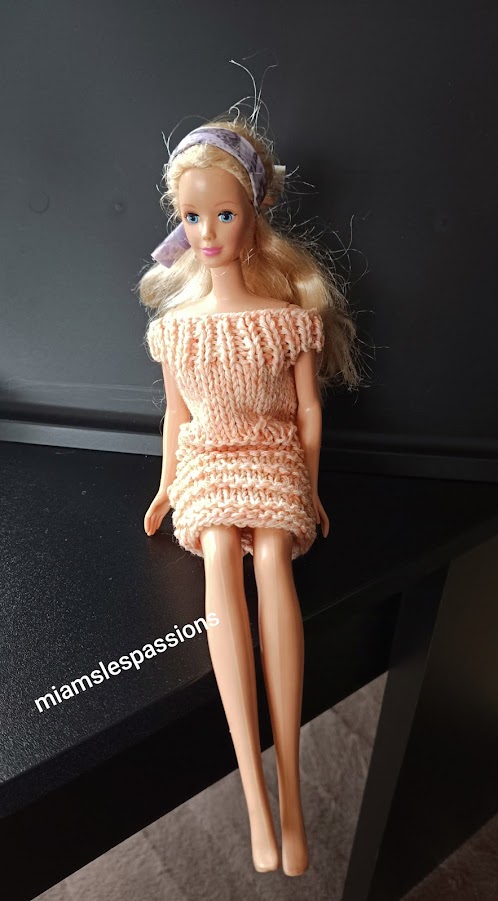 Petite tenue de Barbie au tricot, les tutos sont en général pris sur Pinterest .