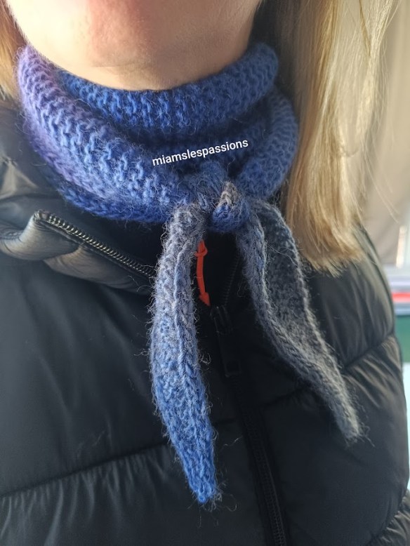 Mini écharpe façon Sophie Scarf réalisée avec cette vidéo sur YouTube ici