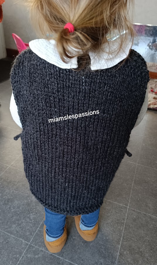 Ce pull a été fait avec les mesures de l’enfant j’ai réalisé 2 rectangles et mis des cordelettes de chaque côté.