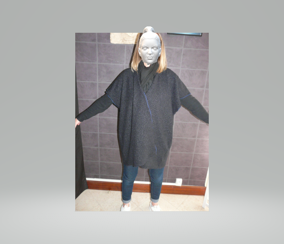 Voici un gilet tout simple à faire avec un tissu de laine bouclée il vous faut 1 m 90 / 85 cm de large. Plier le tissu en 2 pour avoir 85 cm de haut et couper la première moitié au milieu . Avec la surjeteuse ou une machine à coudre faire une couture de chaque côté en laissant un espace pour les bras de 38 cm c’est prêt .J’ai surfilé tout au tour .