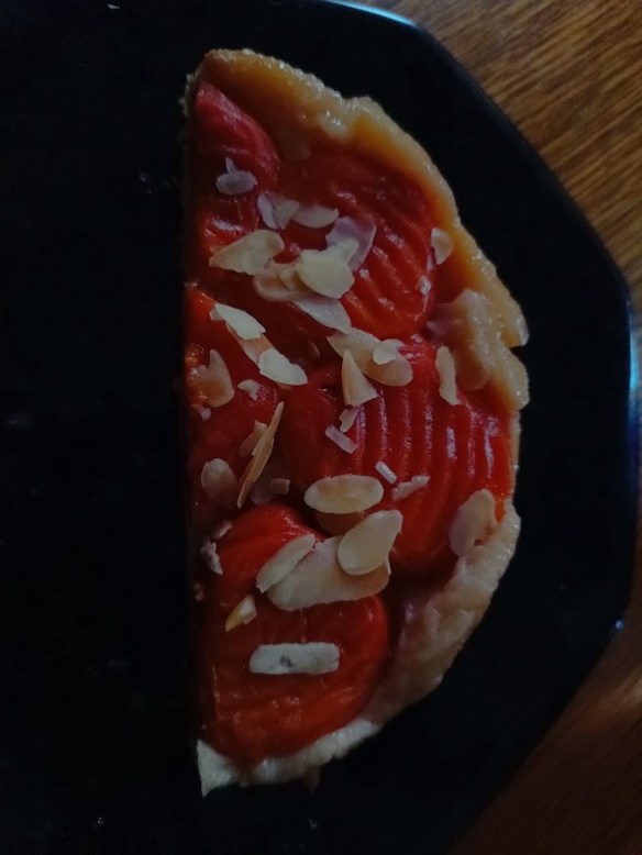 Dans un moule verser du miel puis mettre des moitiés d’abricots ,recouvrir d’une pâte feuilletée. Mettre dans l’Air Fryer 180°/20 minutes. Au moment de servir parsemer d’amandes effilées légèrement grillées .