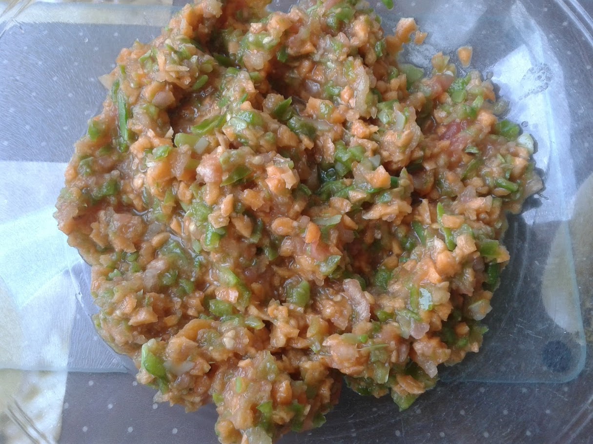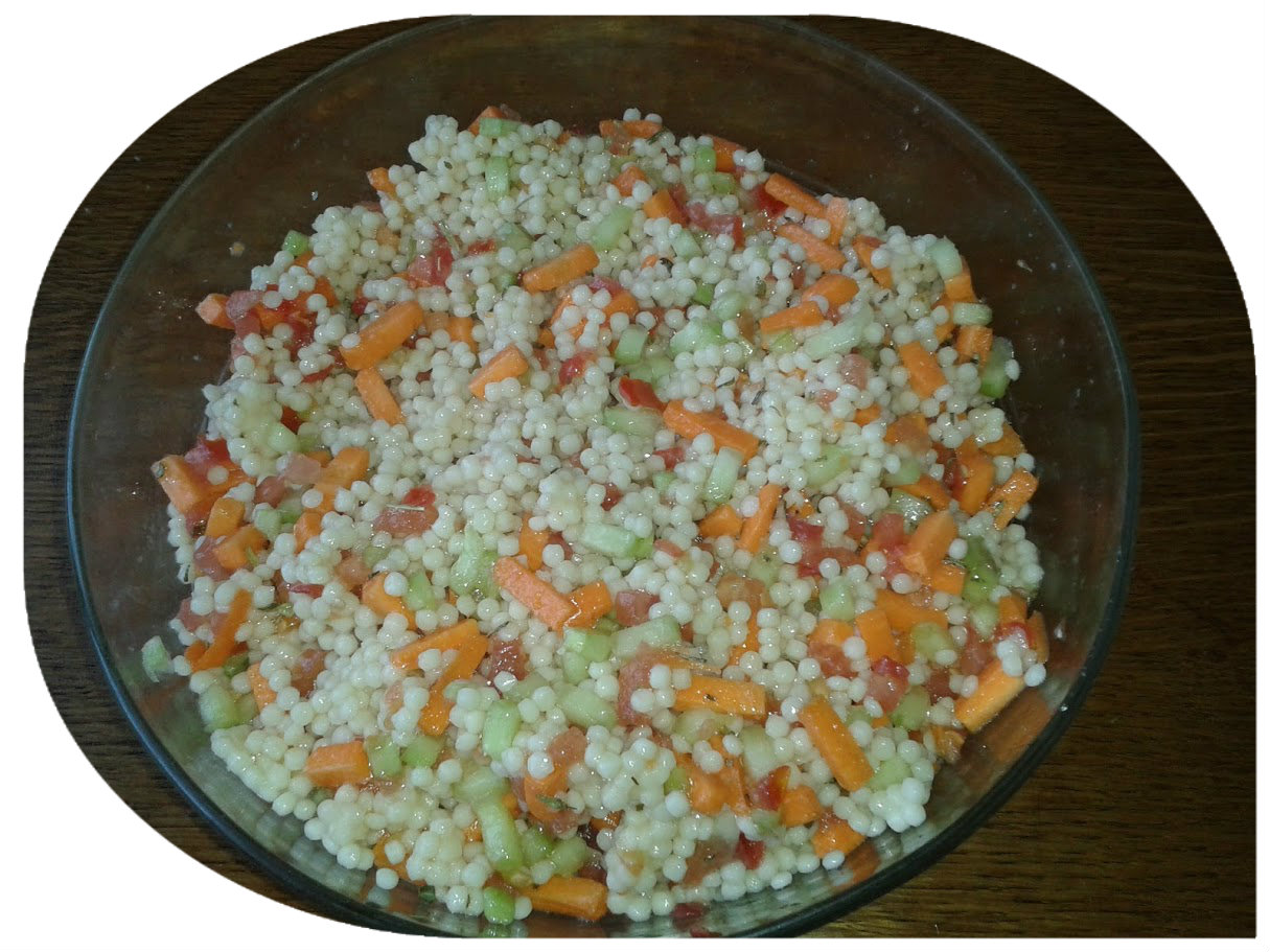 Faire cuire les pâtes perles comme indiqué sur le paquet et les égoutter . Dans le bol du thermomix5 verser une poignet d’haricots verts cuits , 5 carottes , 1 poivron, 4 tomates . Programmer l’appareil 5 s/vit 5.