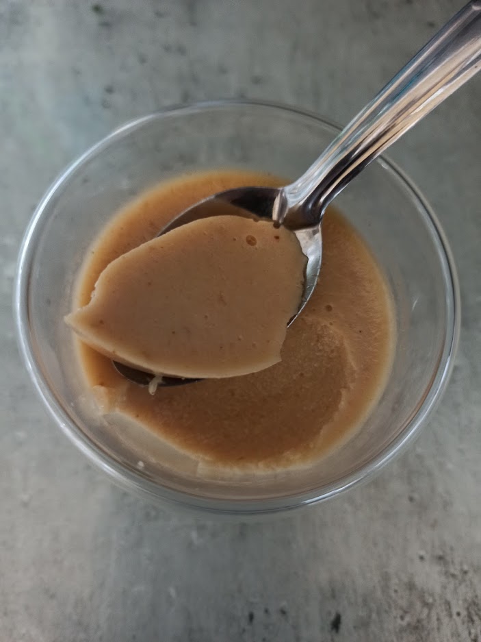 Eplucher 2 pommes et 2 poires puis les couper en morceaux . Placer dans une casserole avec 1 c à c d’anis en poudre et 3 c à s d’eau . Cuire à couvert pendant 15 mn jusqu’à ce que les fruits soit compotés . Placer dans le bol du thermomix ( ou autre mixeur) avec 1 c à s de purée de noisette , mixer vit 6 /20 s . Dans une casserole verser 200 ml de lait et 1 c à c d’agar-agar remuer , porter à ébullition puis laisser frémir 10 à 15 secondes . Verser sur la purée de fruits et mixer de nouveau . Remplir les ramequins et placer au frigo au moins 3 h .