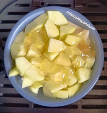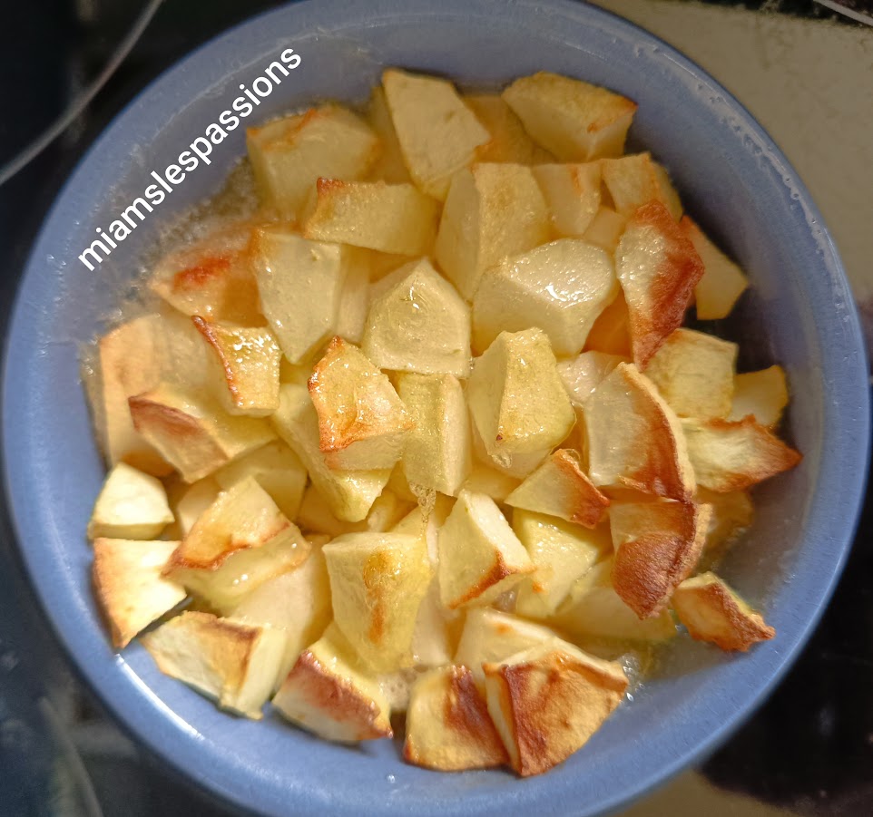 Dans un petit plat éplucher et couper en morceaux une pomme, verser dessus de la gelée de rhubarbe au romarin ici . Programmer l’Air Fryer 170°/20 min.